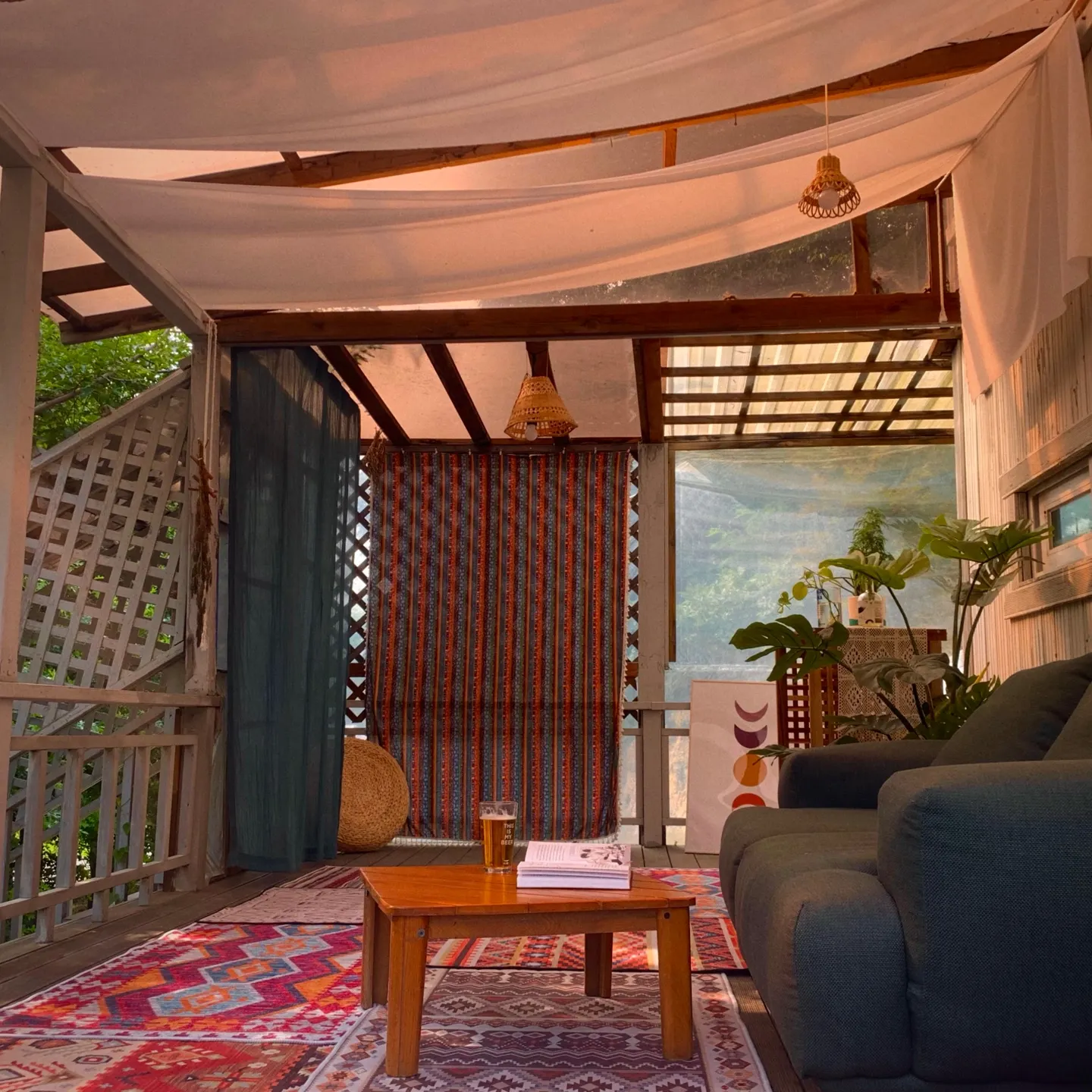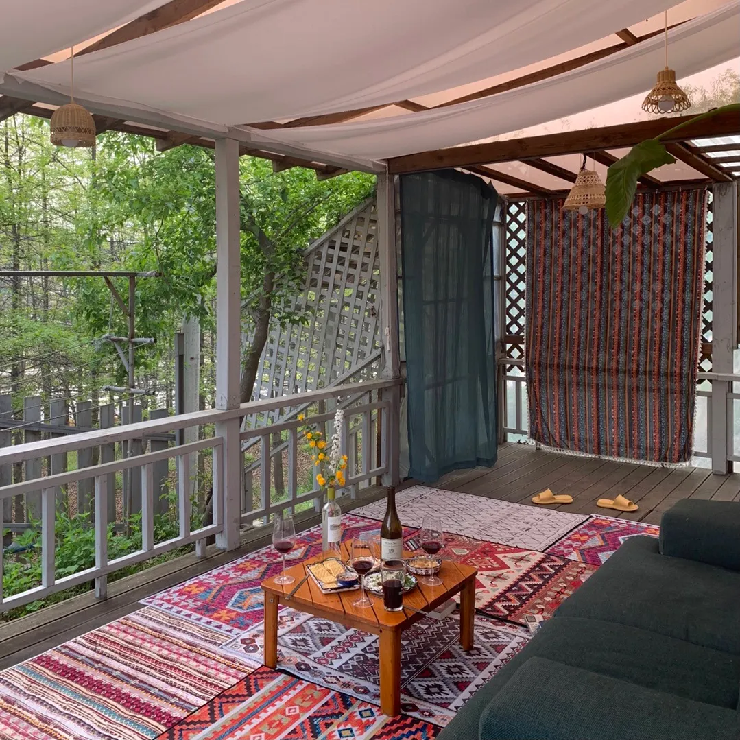 : 야외, 2층, 테라스 곳곳에 혼자 있어도 충분한 공간이 있고요. (물론 함께 즐기기에도 좋은 곳입니다.) 작은 프로그램으로 '훌라/캔들/소원팔찌/아침요가'가 있답니다. 천천히 둘러 본 후, 제일 하단에 '예약하기' 링크를 눌러주세요 :)